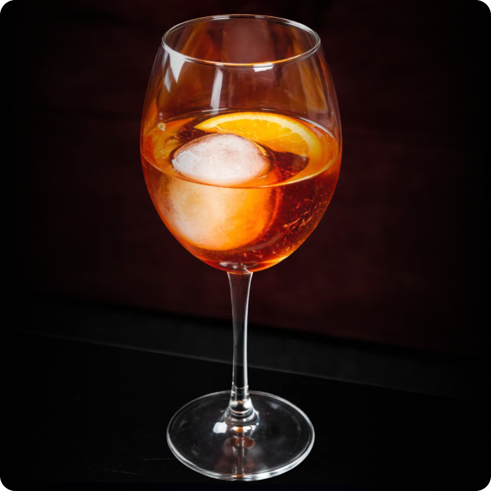 Яркий, игристый — спритц на основе итальянского аперитива со вкусом сочных фруктов и лёгкой кислинки.