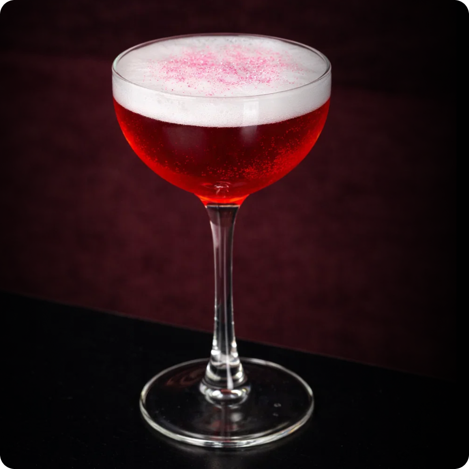 Клубничный соджу, игристое и капля лайма — лёгкий, искристый и сочный. Нежная сладость, свежая кислинка и летнее настроение